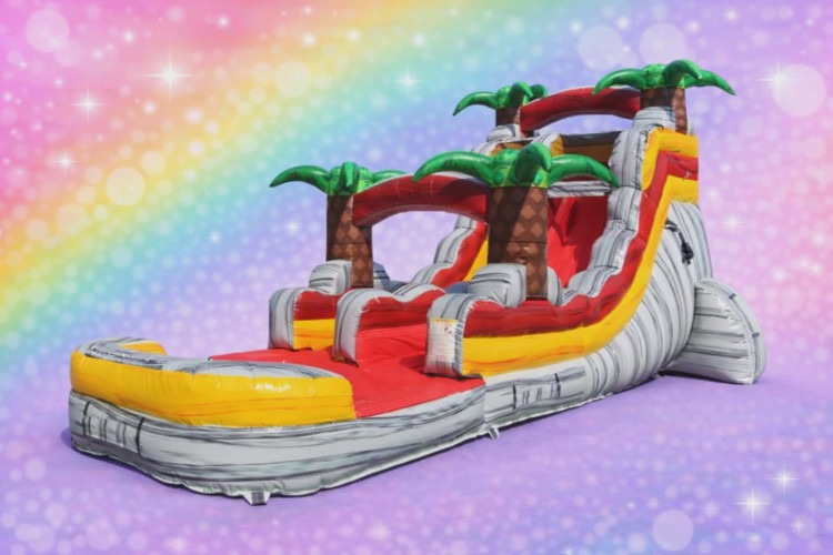 Turn up the heat and make a splash with our brand new 15ft single-lane Fire Island Slide! This tropical-themed slide brings the fun of the islands right to your backyard — perfect for birthdays, family gatherings, or just cooling off in style!