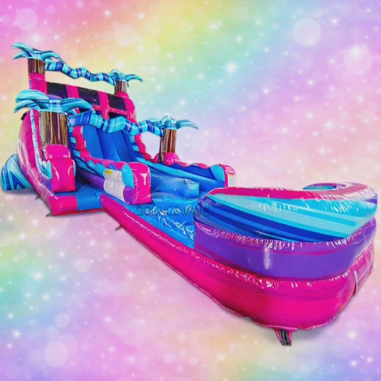 centerpiece of any party. The tall 18-foot height delivers an exciting ride, while the extended splash pool provides a smooth, refreshing landing & perfect for hot Florida days.